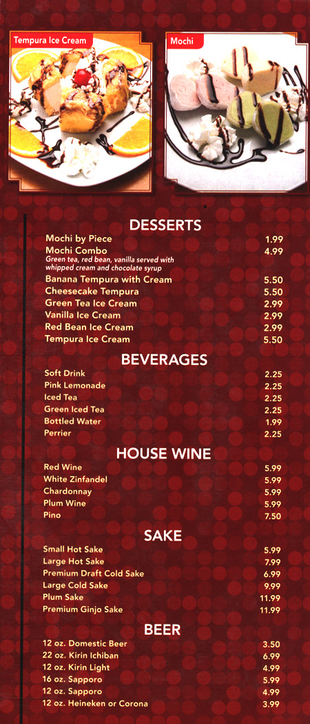 The sushi options are especially tempting, with rolls ranging from classic favorites to unique creations that you won't find anywhere else. If you're in the mood for something more substantial, the hibachi grill section delivers an entertaining and flavorful feast right at your table. Don’t forget to explore the wide selection of appetizers and desserts, which pair perfectly with any meal.